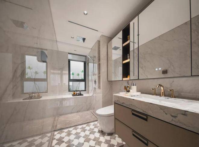 唯宝 (或同等品牌)台盆、主卫 科勒 (或同等品牌)复古龙头、 高仪 (或同等品牌)智能马桶、奢石台面、镜柜美妆冰箱、线性风暖……每一个细节,招商都为业主考虑到了。