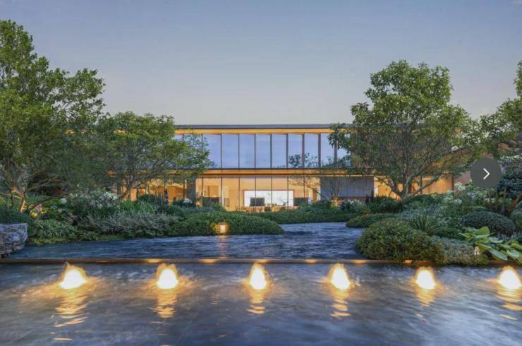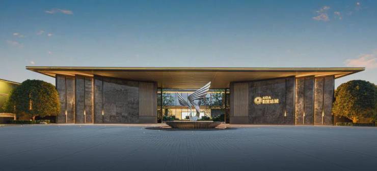 示范区做在实体,也就是未来小区的大门,霸气恢弘,水系景观已呈现,雕塑神似浪花/翅膀,寓意美好!