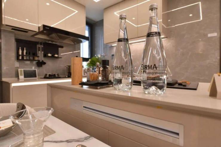 最后值得一提的是,项目还有很多个性化定制设计,包括防雾镜、美颜灯、电热毛巾架、岛台轨道插座(约93㎡户型)、预留美妆冰箱等。