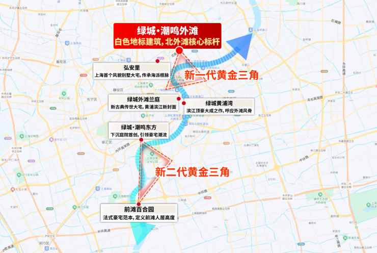 从最初 “外滩-陆家嘴-北外滩” 第一代黄金三角,到黄浦全区、徐汇滨江、世博等板块,顶豪版图看似不断扩容,实则暗藏底层逻辑