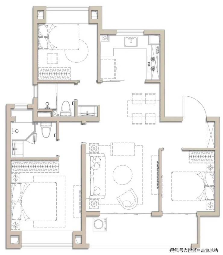 建面约100㎡是个典型的飞机户型,全明户型南北通透,独立玄关实用美观,几乎无过道浪费,延伸了空间的尺度。