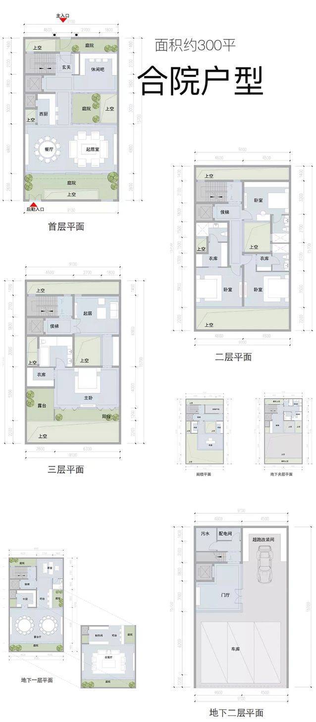 合院别墅面积:200-930㎡