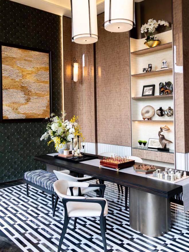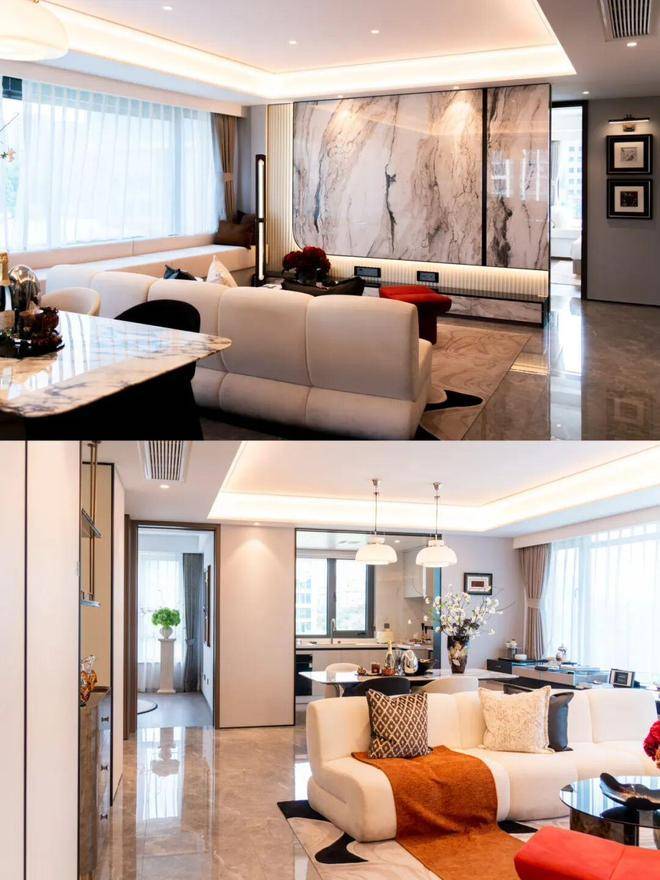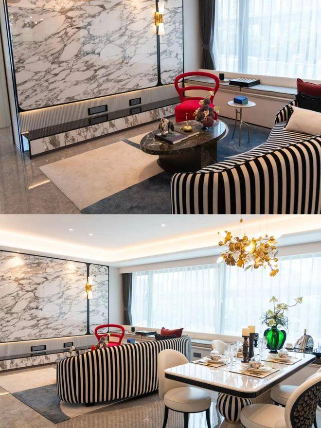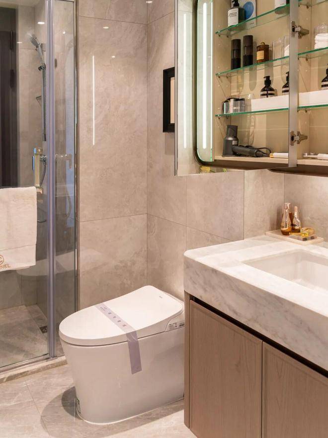 精装修方面,项目提供了香奈儿、奶油风、现代雅奢三种风格选择,并标配了中央空调、地暖、新风系统,厨房配备了方太三件套,卫生间使用了智能马桶等。