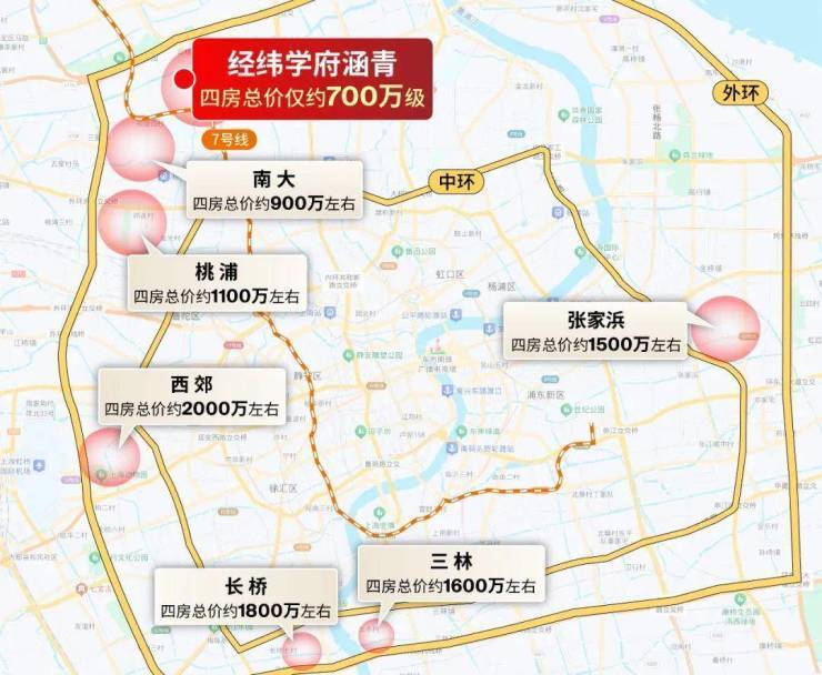 而一旦错过经纬·学府涵青,700万级预算别说买进中环旁4房,就是外环外的3房都难以够到(外环外的梅陇、唐镇单价超过8万,百平3房总价800万级)。
