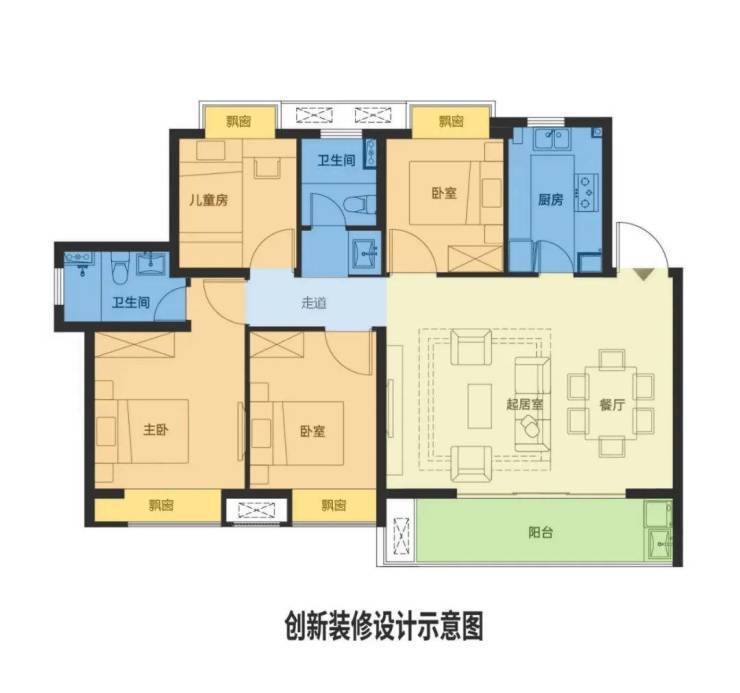 如果想要纯正的私密的4房,可参考上图创新装修设计示意图。