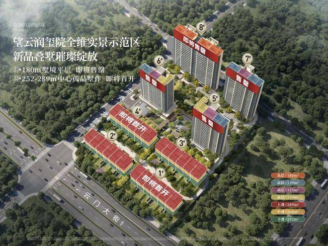 产品类型:包含叠墅(252-289㎡)和180㎡大平层,容积率仅2.1,为云城首个低密墅区。