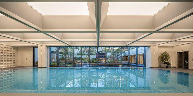 有“蓝钻之星”恒温泳池,通透的落地玻璃窗下与下沉庭院景观相互渗透,实现一年四季畅游的“游泳自由”。