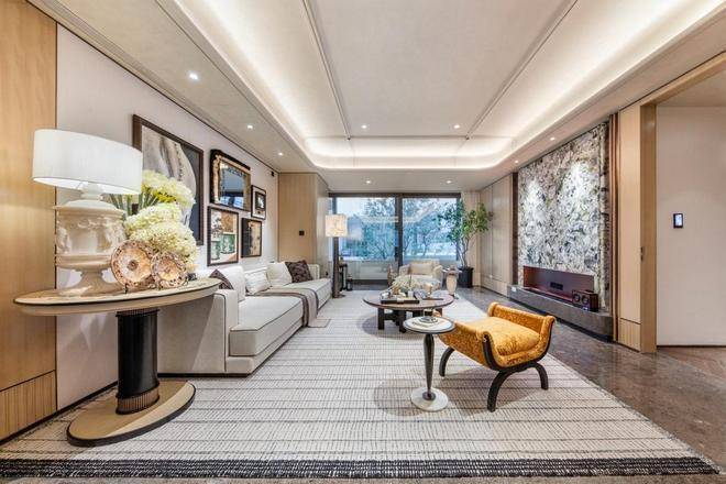 而步入样板间之后,一种当代、静谧且极具质感的艺术氛围扑面而来。