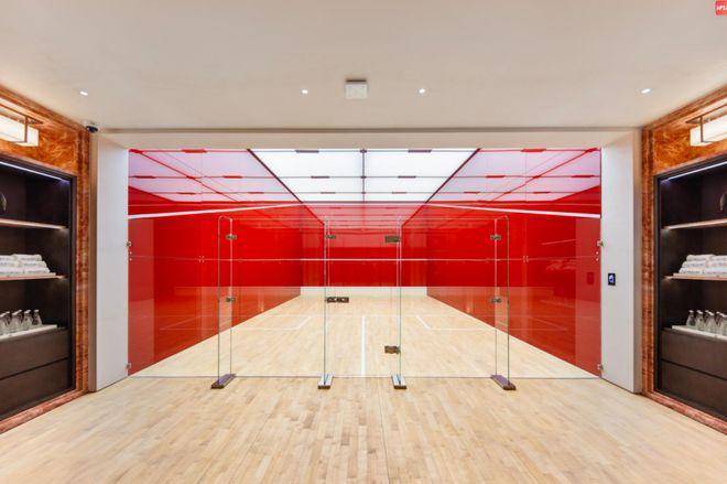 壁球馆用鲜亮的米兰红石材作为背景,营造非常时尚的运动风。