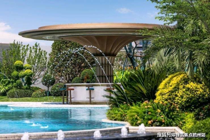 在情绪价值至上的时代,鸣澜里的景观园林也充满了疗愈感。异形的中央水景,悬浮的岛台,充满热带气息的棕榈植物,度假的场景和轻松的氛围十足。对于工作繁忙、生活需要放松的都市年轻人而言,下楼就是旅行、归家就是度假的生活场景,才是家和工作之外最好的第三空间。