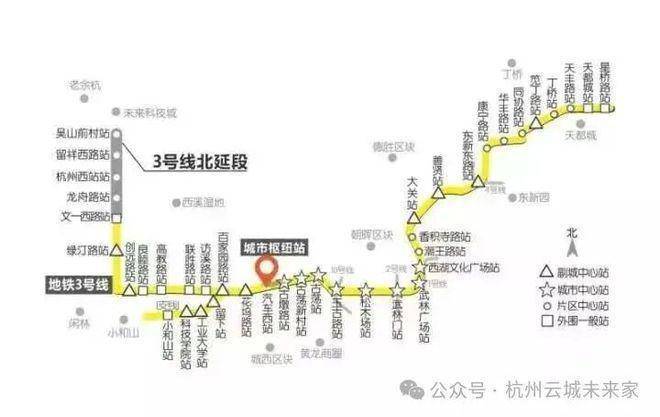 地铁3号线:直线约500米龙舟北路站,始于火车西站途经过武林门、新天地,终点星桥1站换乘5号线,通达全城。