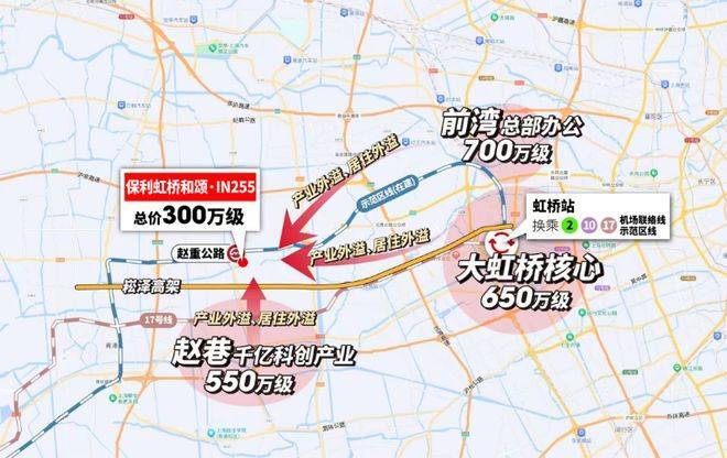 2站外的前湾已700万级,徐泾650万级,与项目同距离的赵巷也已550万级,那保利虹桥和颂·IN255凭借300万级,首付约44万起的价格优势,叠加示范区线(在建)势能,无疑将成为大虹桥乃至全上海更为期待的价格洼地。