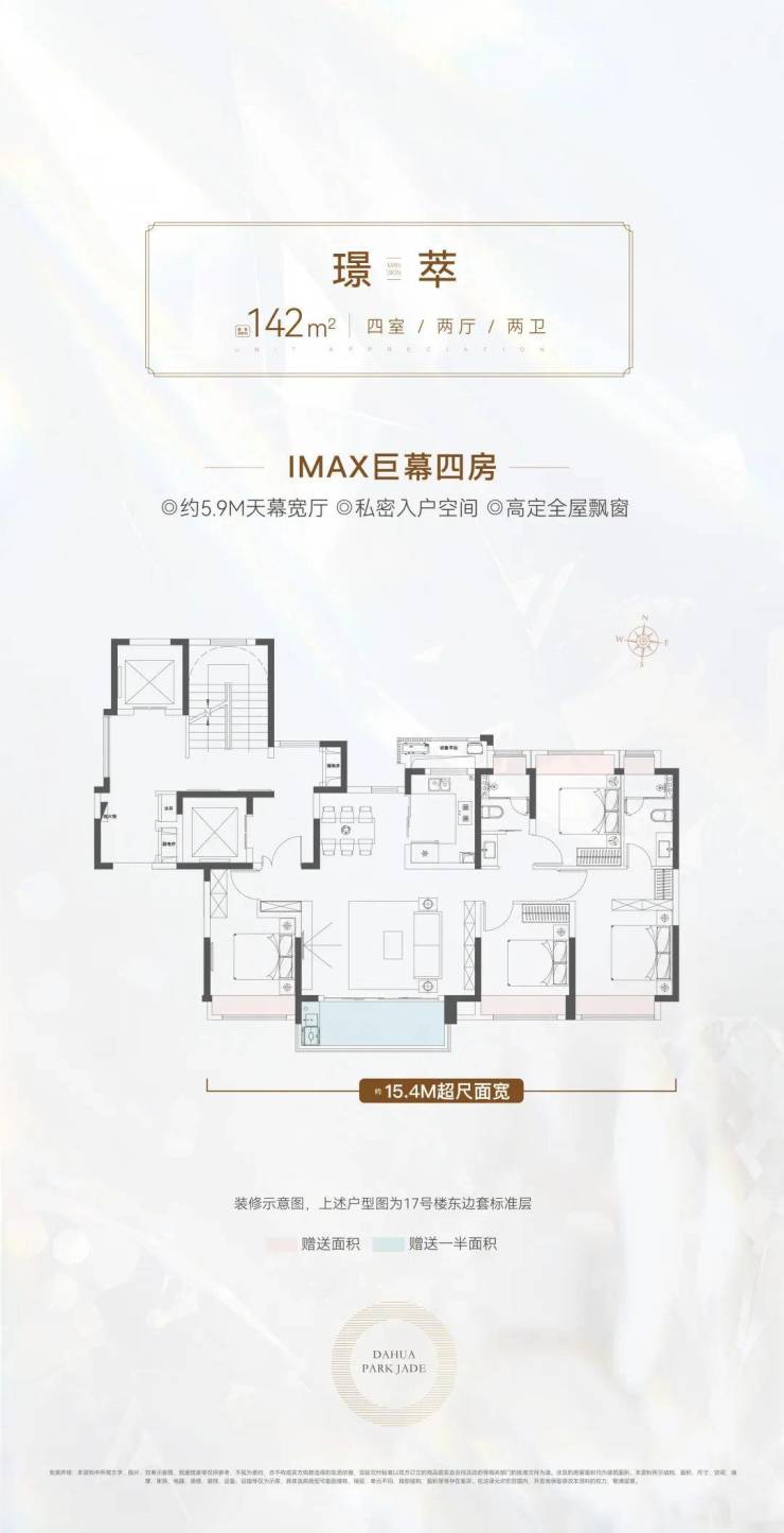 建面约142㎡4房2厅2卫: