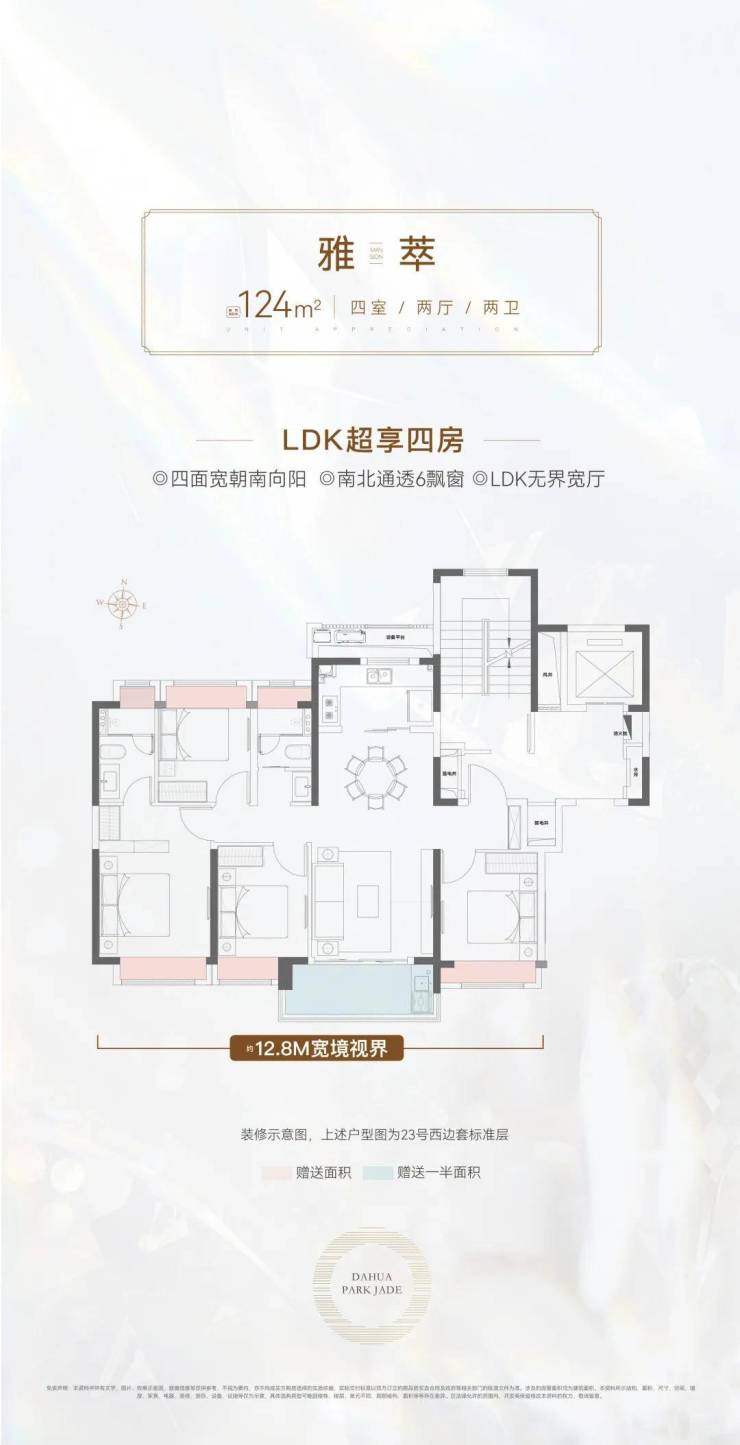 建面约124㎡的4房2厅2卫: