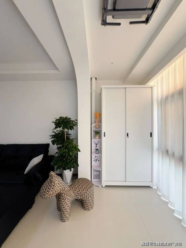 黑色棉花糖沙发与白色地砖形成昼夜并置的隐喻,如同把乔治·莫兰迪的静物画转化为三维空间。就像业主所说:“用最少的元素表达最丰富的内涵。”