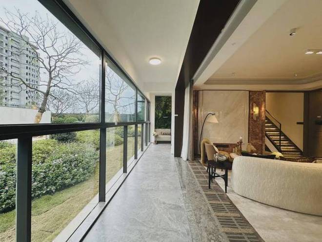 270°环幕视野:无论是上叠的主卧套房,还是下叠的宽奢厅堂,多处设计有270°转角飘窗或采光面,将湿地公园的四季风光框定成室内长卷。