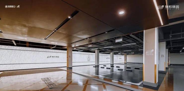 地面采用高品质小橘皮环氧地坪环保且降噪,墙面AI智能识别系统实现无感通行,科技便捷。