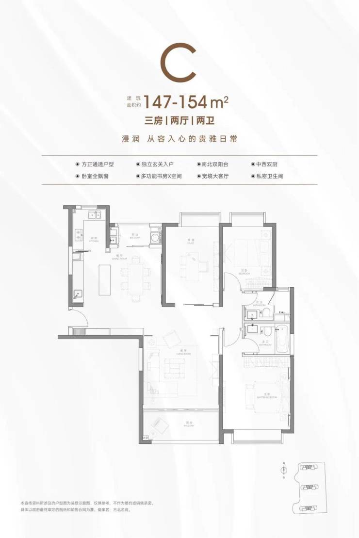 相对而言,建面约134-154㎡大三房,舒适与稳健两者兼顾。