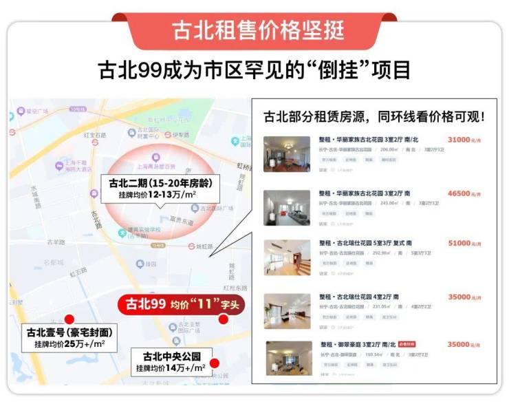 更具说服力的是租金表现——租金是检验房价合理性的黄金指标。以大古北次新房为例: