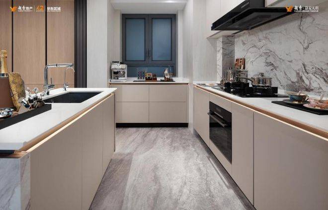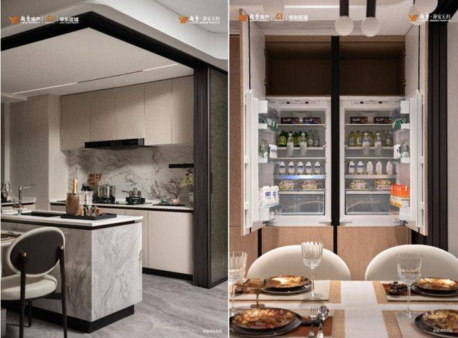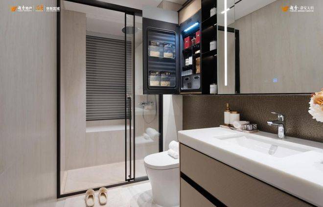 厨房采用德国精工高端品牌配置。博世厨电5件套(吸油烟机、灶具、蒸烤一体机、洗碗机、嵌入式双开门冰箱),铂浪高单体大水槽)+抽拉龙头,康丽根末端净水层层防护。从杜拉维特智能马桶的座圈加热功能,再到博世嵌入式冰箱的精准控温,越秀·静安天玥用顶豪配置诠释“改善≠将就”。