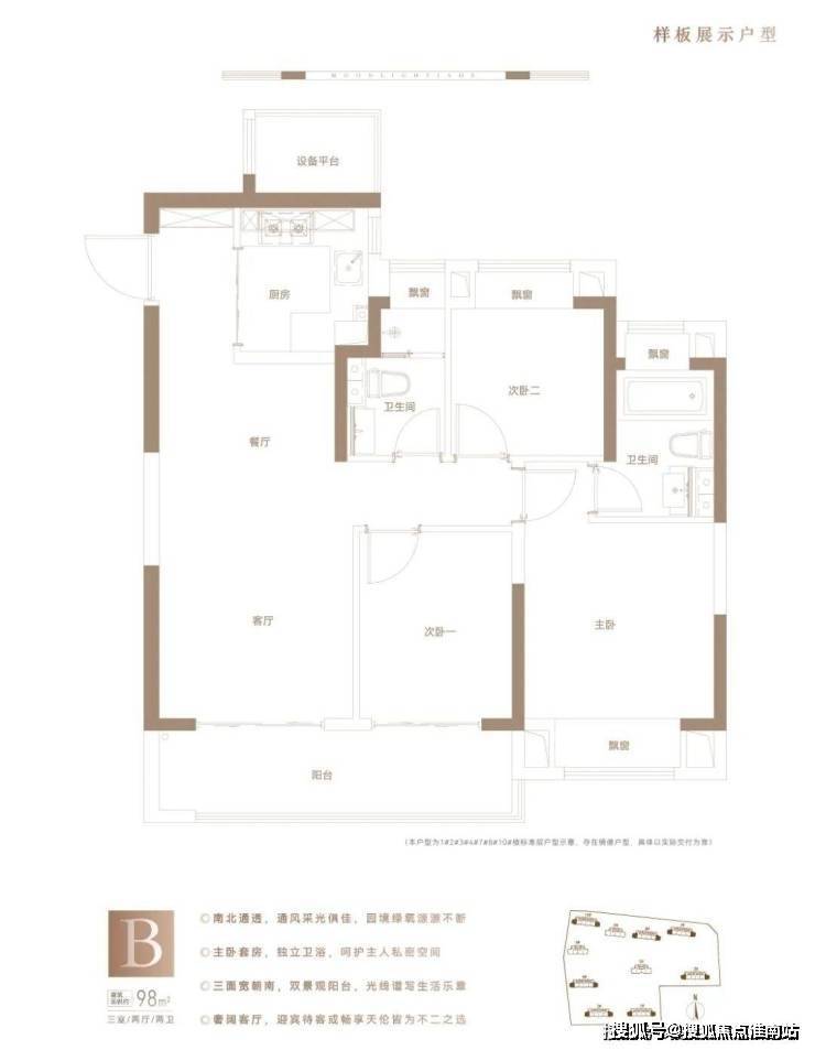 主力在售户型为88㎡、98㎡三房及118㎡四房,剩余房源以高层为主