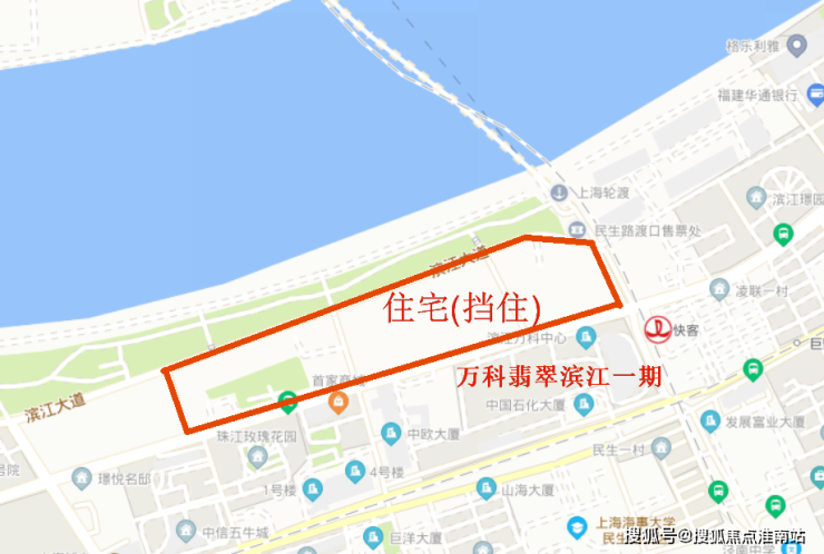 昌邑路上老牌豪宅-万科翡翠滨江一期,原本开阔直面浦江无遮拦,等新地块上建筑物修造好以后,恐怕是以后要瞰江受阻咯!