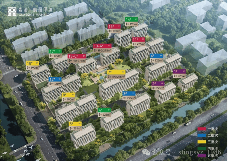 紫金翡丽甲地是2024年9月首期开盘的,小区由16幢6-9层洋房组成,总户数约340套,建面约190-225-275㎡三大户型
