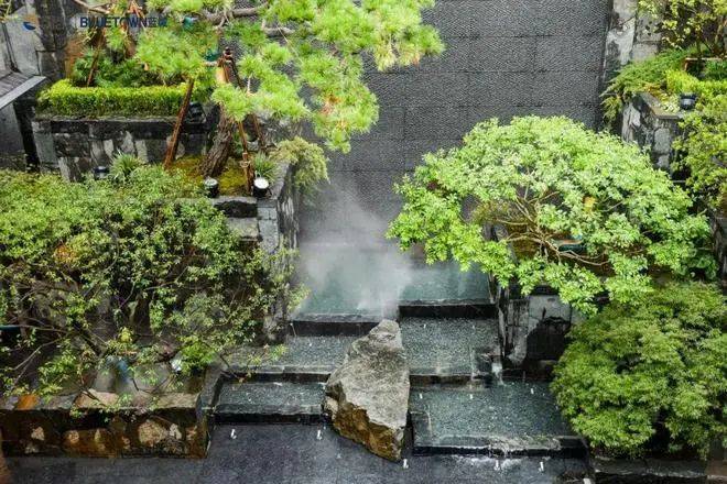 步入百米威仪门庭,名贵松树与叠石水景相映成趣,身处园中,吴江首个下沉式瀑布庭院震撼呈现,设计师以“三远法”构图打造立体山水,仰观飞瀑如白练垂空,平眺曲桥似飞虹跨涧,俯瞰湖石花木相映成趣。每一处细节,都暗藏宋代画中“ 可游可居”的妙思。