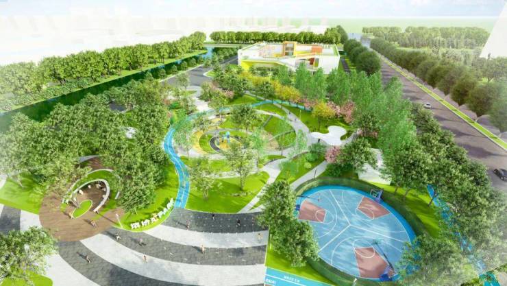 星字头同步的教育资源、湖东同款邻里中心、商业水街、文体中心、地铁...几乎是直接照搬了“园区模式”