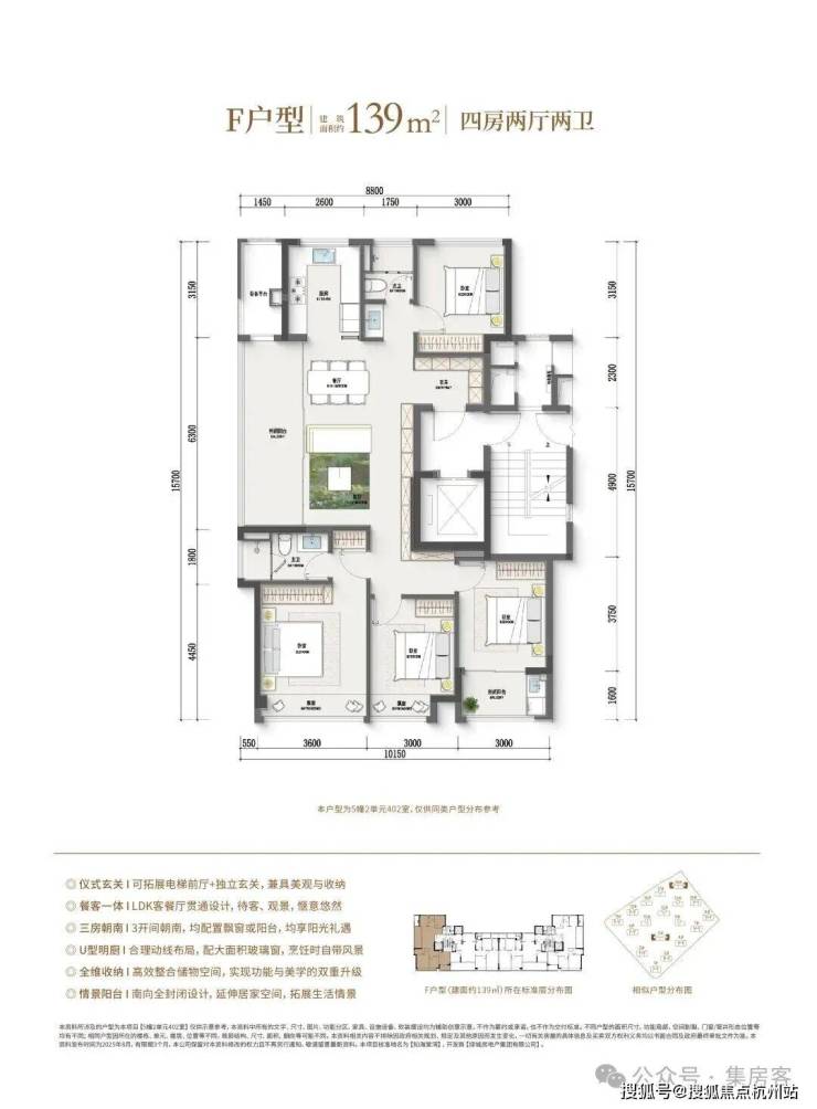 如果预算再多一点,家里人多一点,建面约128㎡边套四房户型,同样也是边厅户型,空间更大,功能性更强,总价相比市面上的139㎡还是亲民了许多。此外,作为板块首个封闭式阳台的住宅项目,还是之江首个全屋五重收纳功能柜子全赠送的项目。