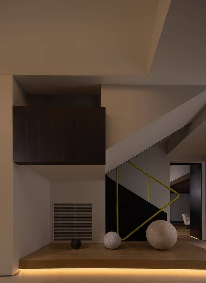 整个房子改造完大概在650平方,地下利用层高优势做了二层,最大限度的充分利用空间。原室内地下层没有采光,是原空间最大的问题。我们通过花园下挖,做了叠层的下沉式花园,让负二层有了良好的景观和采光,同时让负一层的客房拥有一个室外露台,能够走出室外感受四季的变化。在室内我们也通过不同功能的需求做一些错层的处理,让居家体验在长久待的地方有足够的层高。