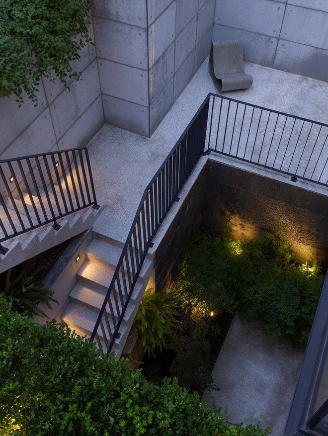 我们通过精心计算的开窗,采光井,下沉式的花园,将自然光引入室内。光线在不同时间,不同季节,于墙面、地面投射出丰富多变的光影效果,成为空间中动态的有生命的装饰。庭院作为建筑的呼吸中心,尽量让室内外界限物理性消隐,从而使室内空间与庭院融为一体,实现真正的“生活在自然中”。另外,在智能家居与可持性设计的结合中,也是考虑以人为本。采用五恒系统、智能系统来提升居住的便捷性与舒适度。