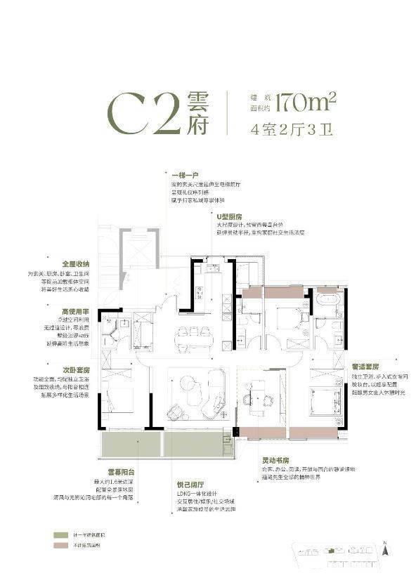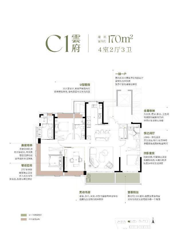 建面约170㎡四房:均价约10.05万/㎡(整盘均价参考)