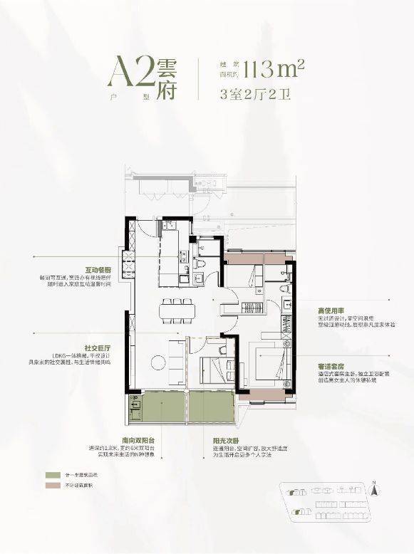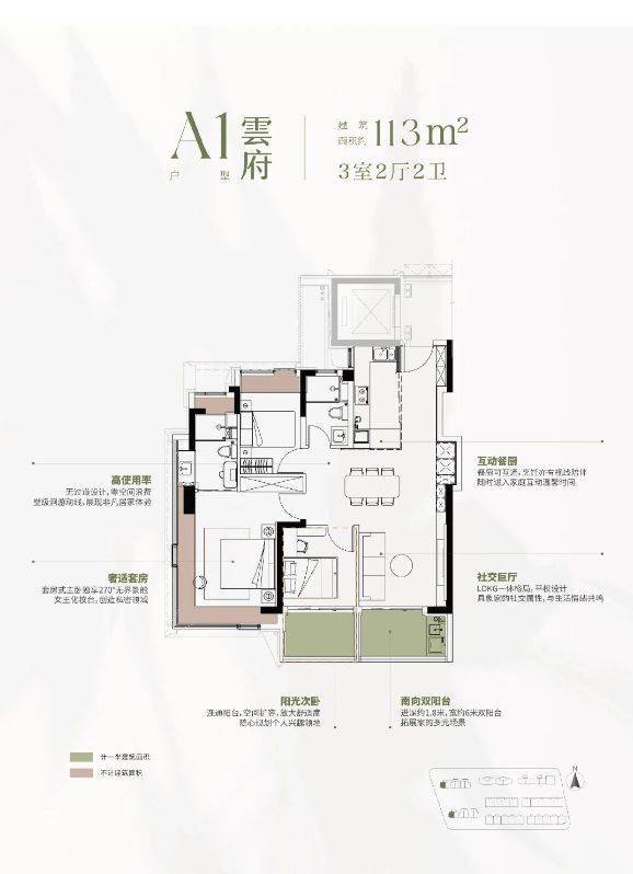 建面约113㎡三房:均价约10.05万-10.5万/㎡,总价约1136万起