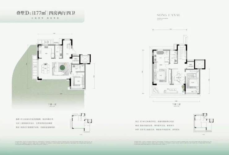 下叠:庭院雅筑:下沉式庭院直连阳光地下室,引自然入室,私享“有天有地”的立体生活场域。
