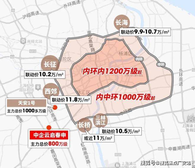 至于外环周边,如杨浦长海、普陀长征、长宁西郊及闵行七宝的天安1号,无一例外均以千万元起售。