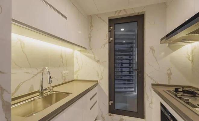 厨房通燃气,阳台配置了燃气干衣机,解决晾晒问题,细节到位!