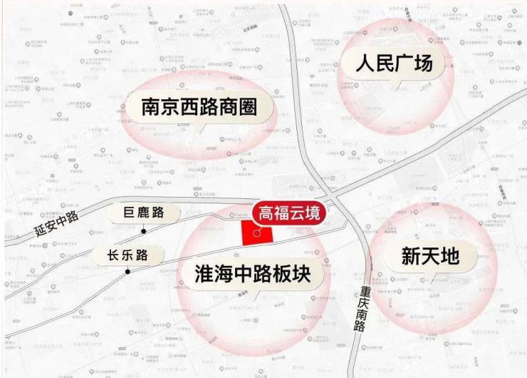 在具体位置上,高福云境位于上海百年核心商业区淮海中路商圈,北临巨鹿路,南临长乐路,正是无数上海人心目中的白月光“巨富长”街区。