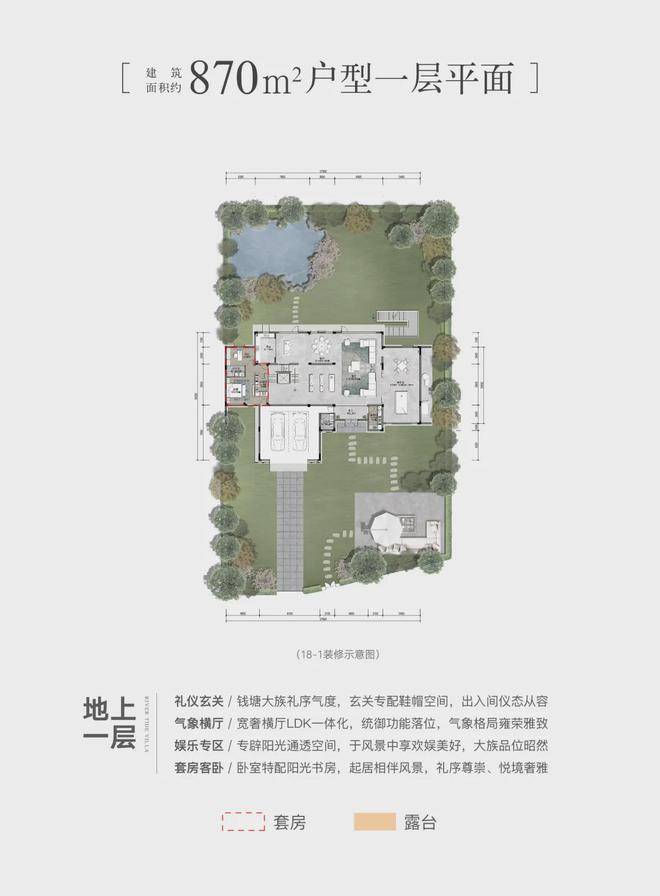建面约300-870㎡的面积段设置主力的建面约340㎡户型,在限价时代的杭州已是起步户型最大的项目,更惊人的是,主力庭院面积达到了约80-300㎡,最大近2亩!站在庭院里,会有一时恍惚,这不是草坪,简直是绿茵场啊!