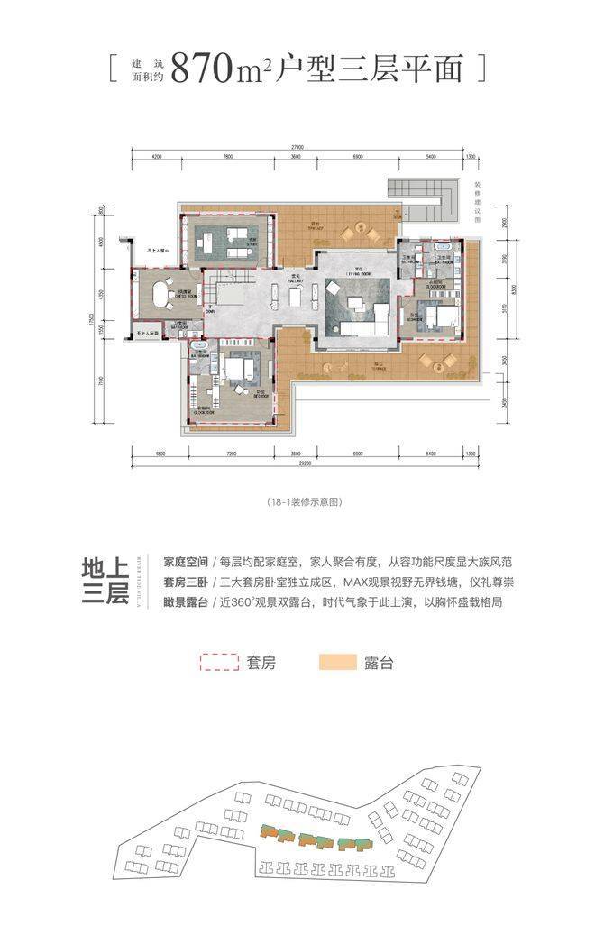 建面约870㎡地上三层户型图