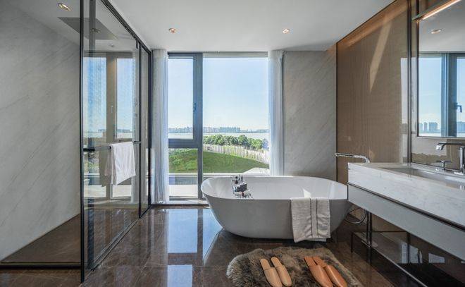 已称瑰奇但还有它距杭州大会展中心约1.2公里。上可露台仰望星空,下可俯瞰700米江岸线;又建于南宋皇家猎场赭山余脉之上,那天高地迥、居高临下的壮美,真是独一份。来到春江潮鸣,看到离江最近不到20米的红线,山顶翳郁的老香樟林,还有刚动工的大会展中心,已仿佛听到古老土地下的低沉轰鸣声。
