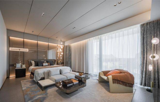 二三楼的视野则更加开阔,绵绵江水以及拥江城市界面直入眼帘,可以轻松实现边梳洗边看江:甚至躺在床上,拉开窗帘,就能欣赏千里波涛滚滚来:由于层高出色,地下室也有了更多可能,先生的酒窖、雪茄墙、游戏厅,太太的瑜伽室、手工坊、健身区,孩子的游乐场,统统能够轻松按下。
