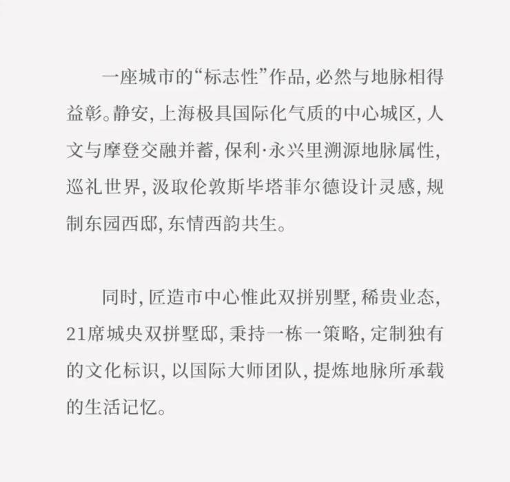 上海风貌别墅供应主要集中黄浦、静安、杨浦和虹口四个行政区,保利·永兴里建面约210㎡城央双拼墅邸,18万/㎡城央恒产,成就时代臻稀品