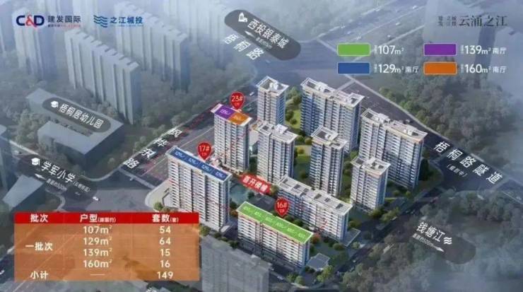 户型建面约107-174平,107平洋房,可做4房;其他户型为纯T2小高,类一梯一户,纯改善四房社区;