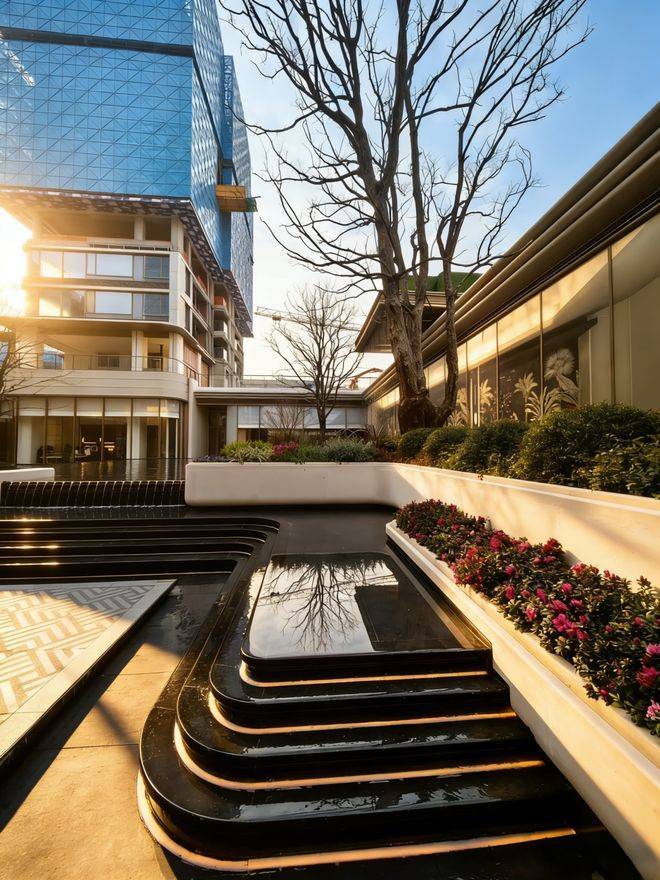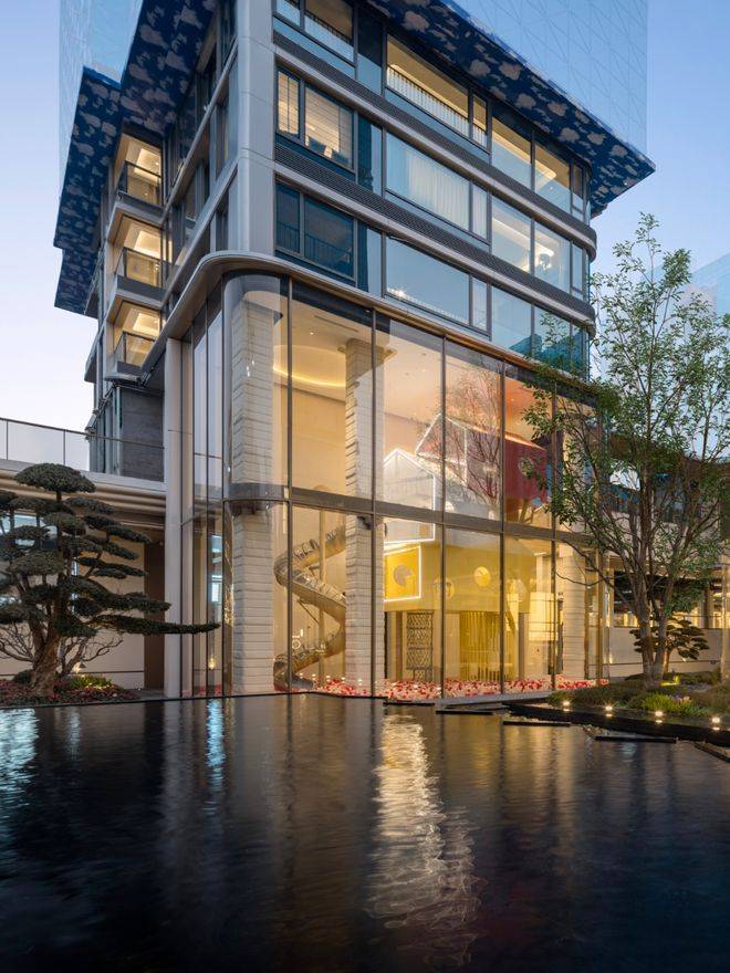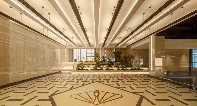 项目配备近6000平方米的室内外一体化会所,涵盖恒温泳池、健身房等高端功能区,并设有童玩、运动、社交、阅读等五大主题架空层泛会所,整体配置堪比千万级豪宅。高达8米的菱形网格顶四季花厅,复刻酒店的通透奢华,扶梯、电梯与艺术楼梯构建交通中枢,将酒店礼仪空间转化为住宅高效动线枢纽,实现美学与实用的完美融合。绮丽大堂以石材拼花与木饰面相得益彰,延续酒店材质碰撞的设计逻辑,中和冷硬感营造归家温暖,兼顾耐用性与舒适度,让仪式感与归属感并存。