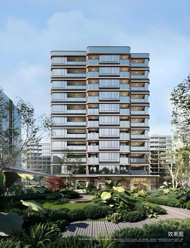 在立面设计上,建筑以公建化的精致与简约风格呈现。干净利落的线条,结合大面积玻璃幕墙与高级金属、石材材质,勾勒出现代典雅的轮廓。其设计不仅追求美学,更注重生活体验,通过优化的窗墙比,将板上的花园盛景与远方城市风光最大化引入室内。
