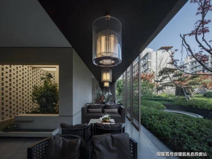 架空层位于中心庭院与景观组团之间,通过合理的空间布局,使得前后两个花园自然地连接成一个整体的大空间。
