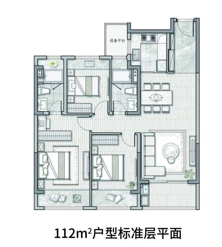 整个小区采用的是现代化建筑风格,外立面材质采用了铝板加玻璃幕墙,每栋楼架空层及入户大堂门头外立面采用的是花岗岩石材铺设,基座沉稳,外立面美观坚固,展现出与众不同的高级感,另外我们卧室的窗地比超高,超大屏玻璃面,提升外立面美感的同时,又可以将采光扩大到极致。