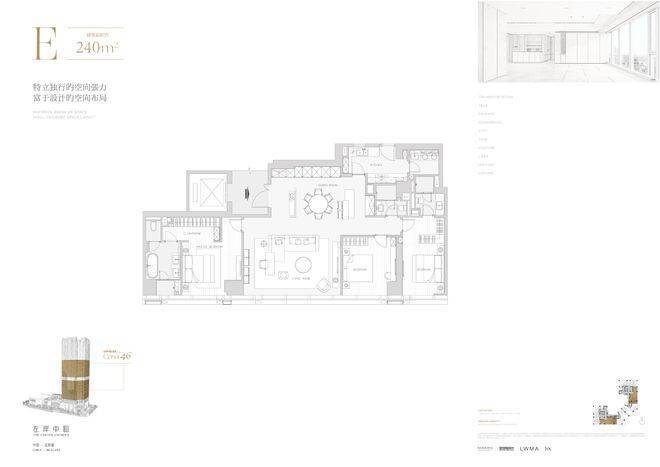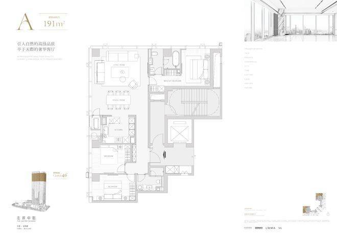 奢阔尺度,演绎空中平层的生活样本项目规划了46层全精装垂直空中花园社区,铝板与玻璃幕墙勾勒出现代美学立面。共打造了6款建面约191-326㎡的超高大平层,分为高区和低区。无论是约191㎡的舒居三房,还是约326㎡的奢阔端厅,每一款都配备国际一线品牌精装,旨在为中心人物打造一个资源型的全能生活场。
