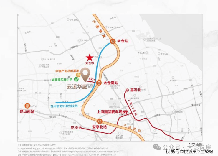 【交通配套】沪通高铁、沪宜公路接轨上海虹桥枢纽、上海嘉定等区域,另外,苏州轨交11号线(试运行中)、上海轨交11号线接入太仓南站(规划中)